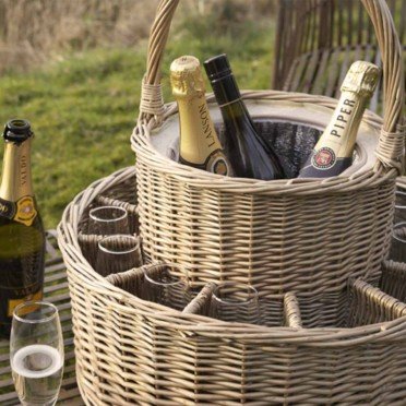 Chilled Wicker Champagne Basket with 12 Flutes ~ The Chilled Wicker Champagne Basket with 12 Glasses keeps your bottles cool and your glasses upright so youre well prepared for an afternoon of frivolities with friends and for Wedding Presents and summer parties the Wicker Champagne Basket is a real head turner and the only way to safely transport Champagne and glasses this Details Basket SizeDia 46cm Height 21cm 52cm including handle Size17cm including stem