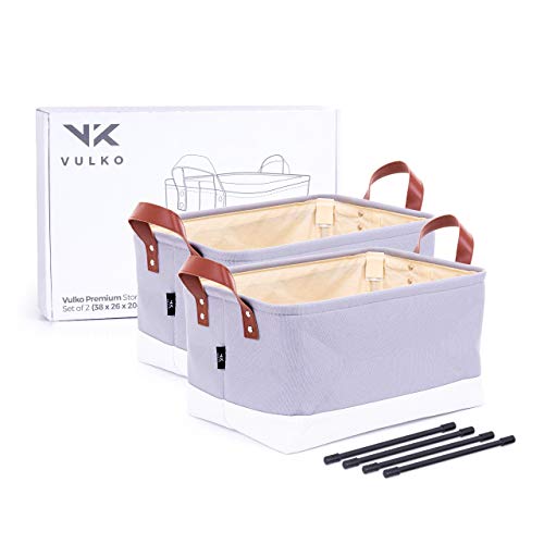 Get the best deal today.. If you would like for Vulko Canvas Fabric Storage Baskets Set of 2 - Grey Storage Basket Upgraded With Support Rods For Wa look at our review to acquire the best products you prefer. Read information about this product below.