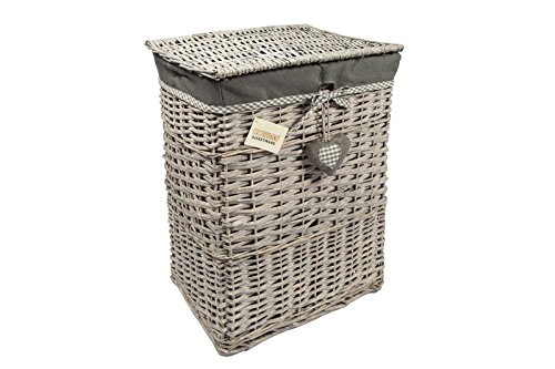 Price WoodLuv Large Rectangular Laundry Linen Willow Wicker Basket with Lining, Grey in UK.